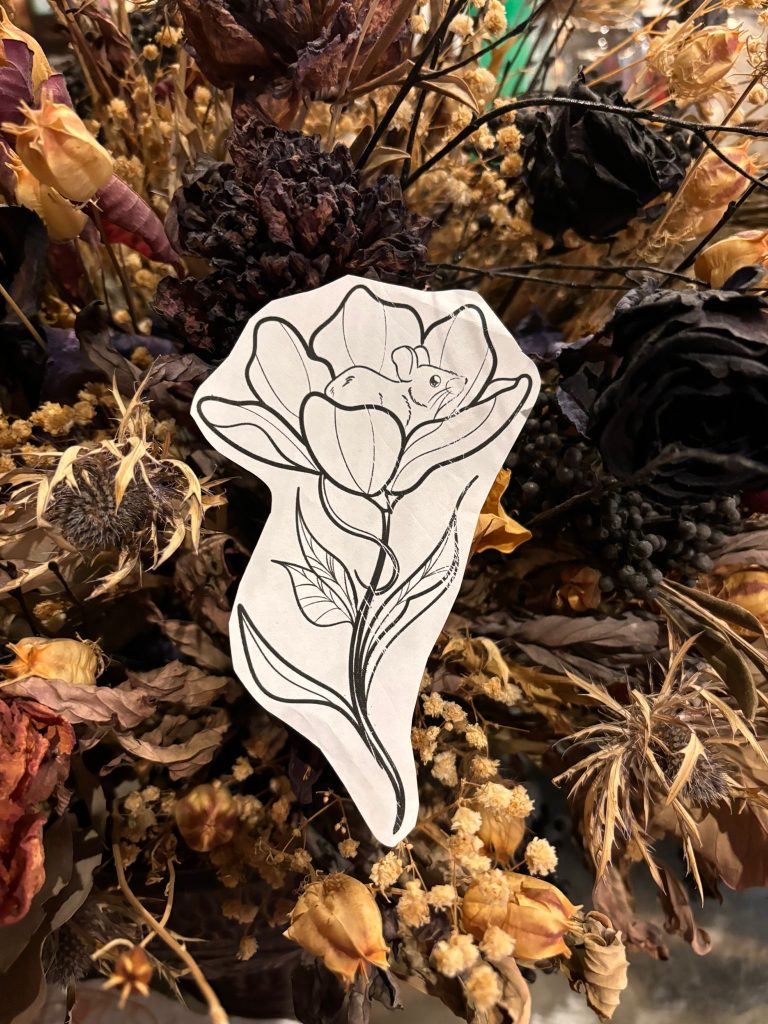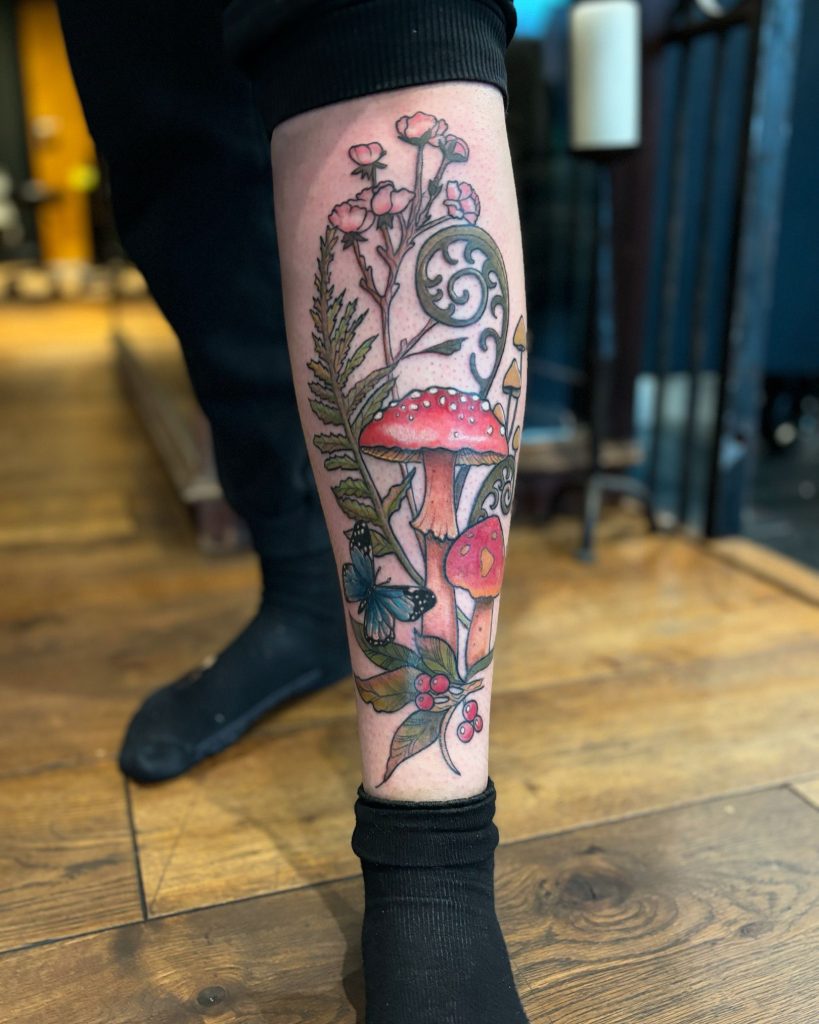 I really like tattooing anthropomorphised animals, nature inspired pieces and florals.