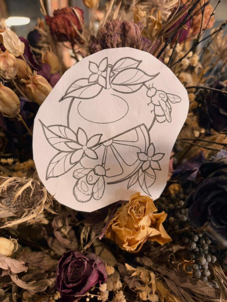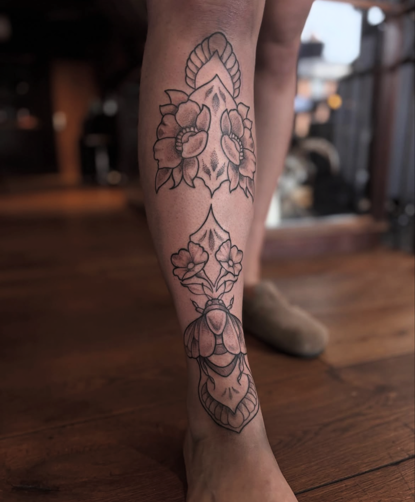 I first got into tattooing when I left art college and worked at a studio in Leicester. I sat with the artists all day learning as much as I could for around two years. While I was there I also learned how to pierce. Working there taught me how tattoo studios work, allowed me to develop artistically, and made me want to immerse myself fully into the industry.