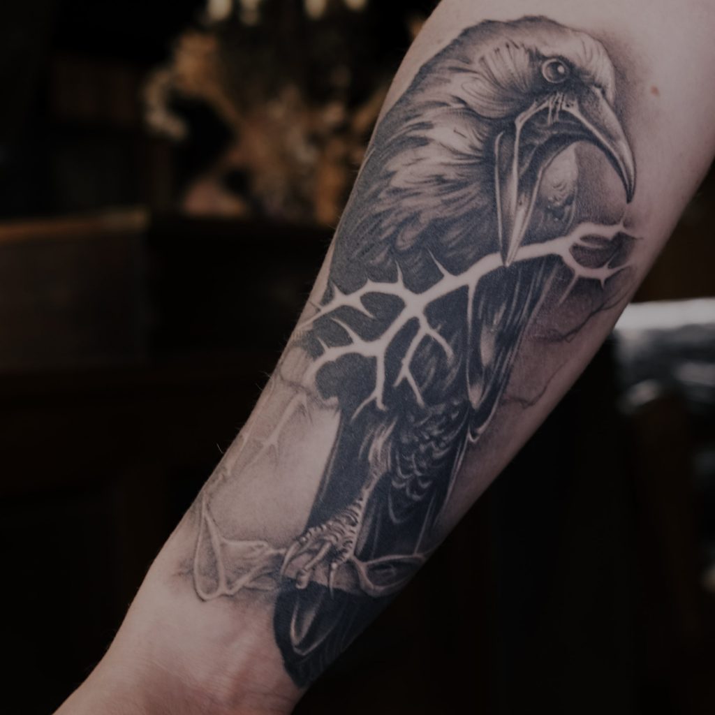 Mark Weatherhead, our founder and visionary of award winning One For Sorrow Tattoo Studio in Shrewsbury. Mark brings over 15 years of experience to his work, with a traditional academic background in fine art, digital art, and photography, he seamlessly transitioned his skills into the world of tattooing. Specializing in black and grey realism, Gothic/Dark Surrealism, Blackwork, and portraits, Mark’s work is deeply influenced by his appreciation for the darker side of art and a passion for creating unique, collaborative pieces with his clients. He was taught and mentored by the renowned artist Tommy Lee Wendtner, and has spent years traveling and working in leading tattoo studios and conventions across Europe. Mark established his own studio in 2019, creating a space for like-minded artists and clients who appreciate the artistry and history of tattooing.