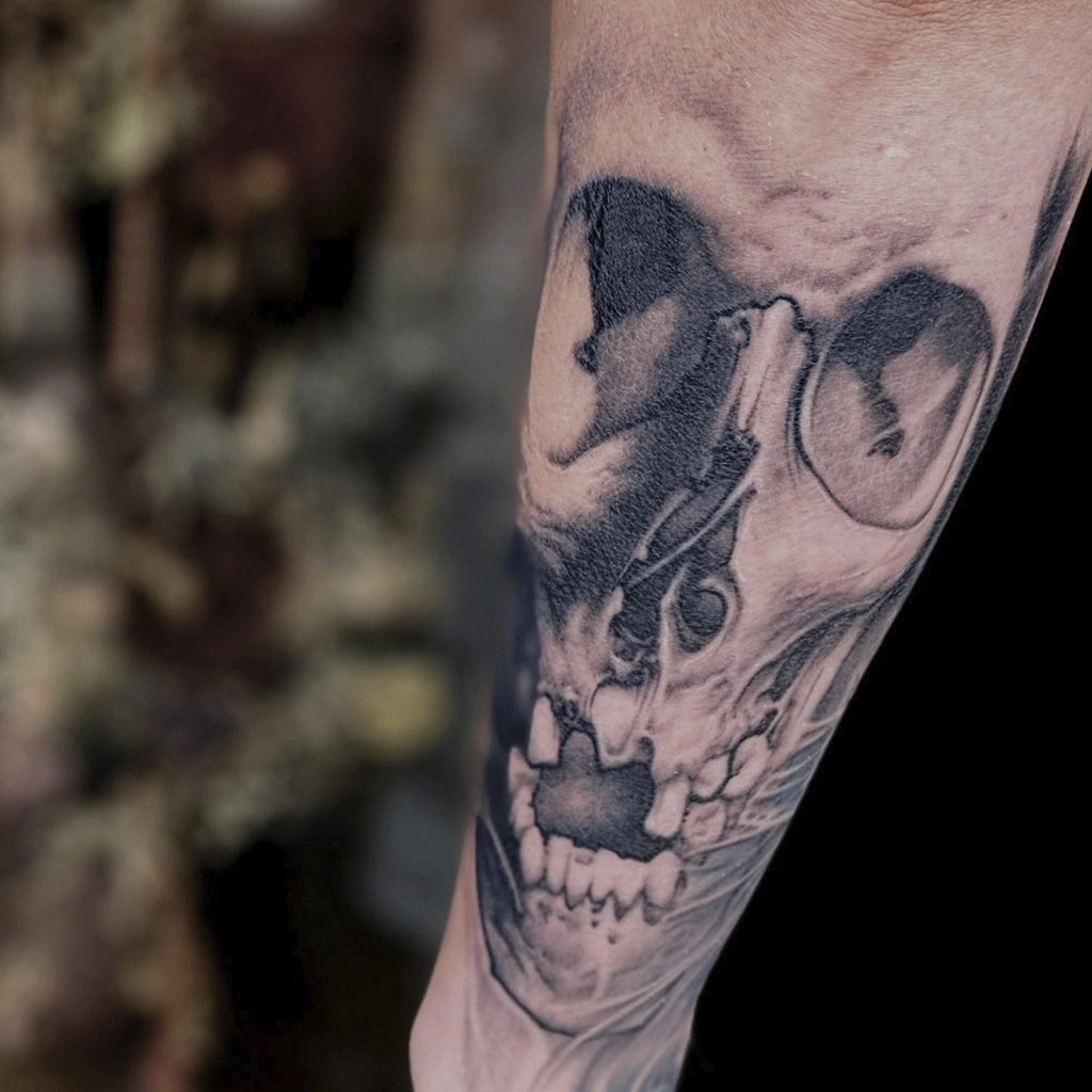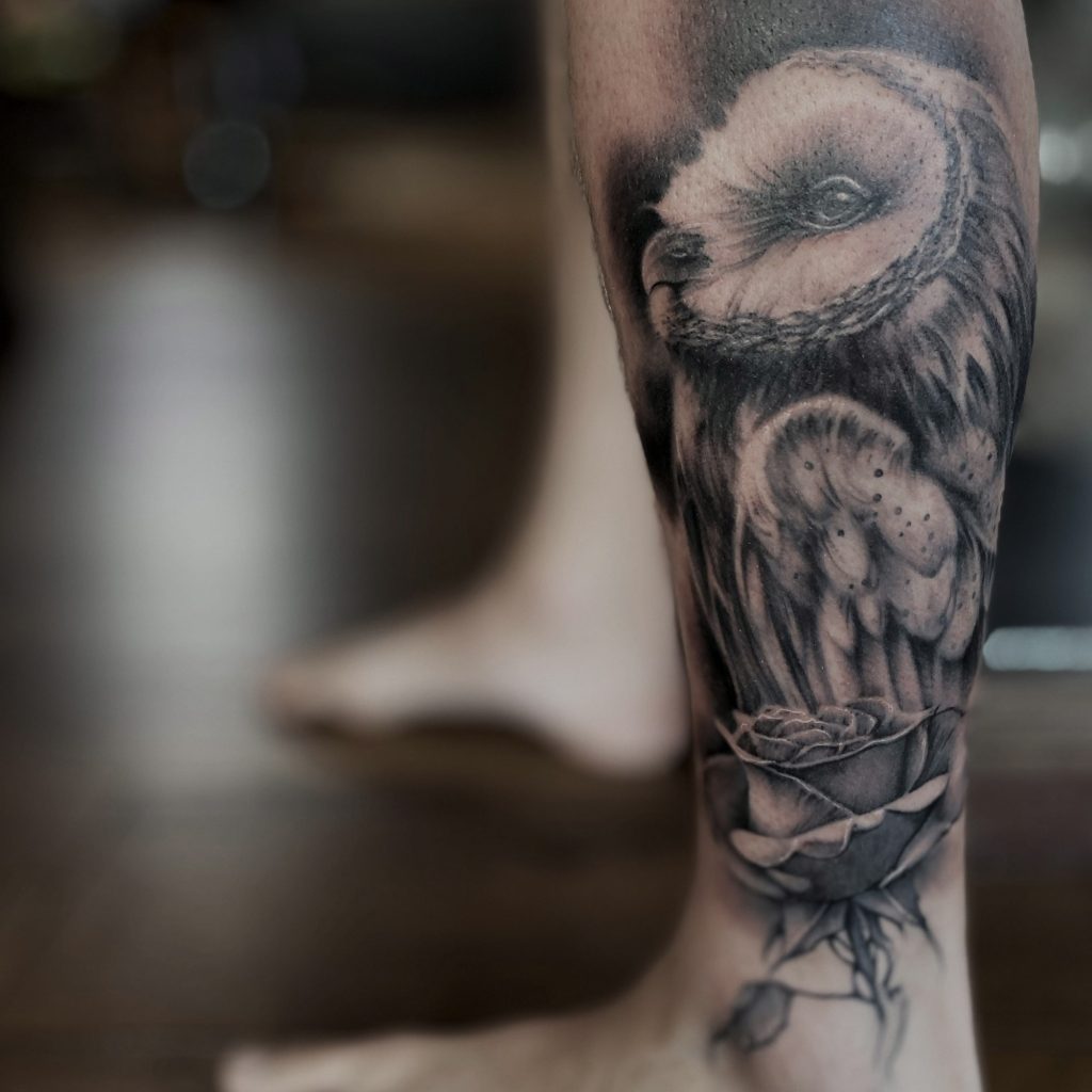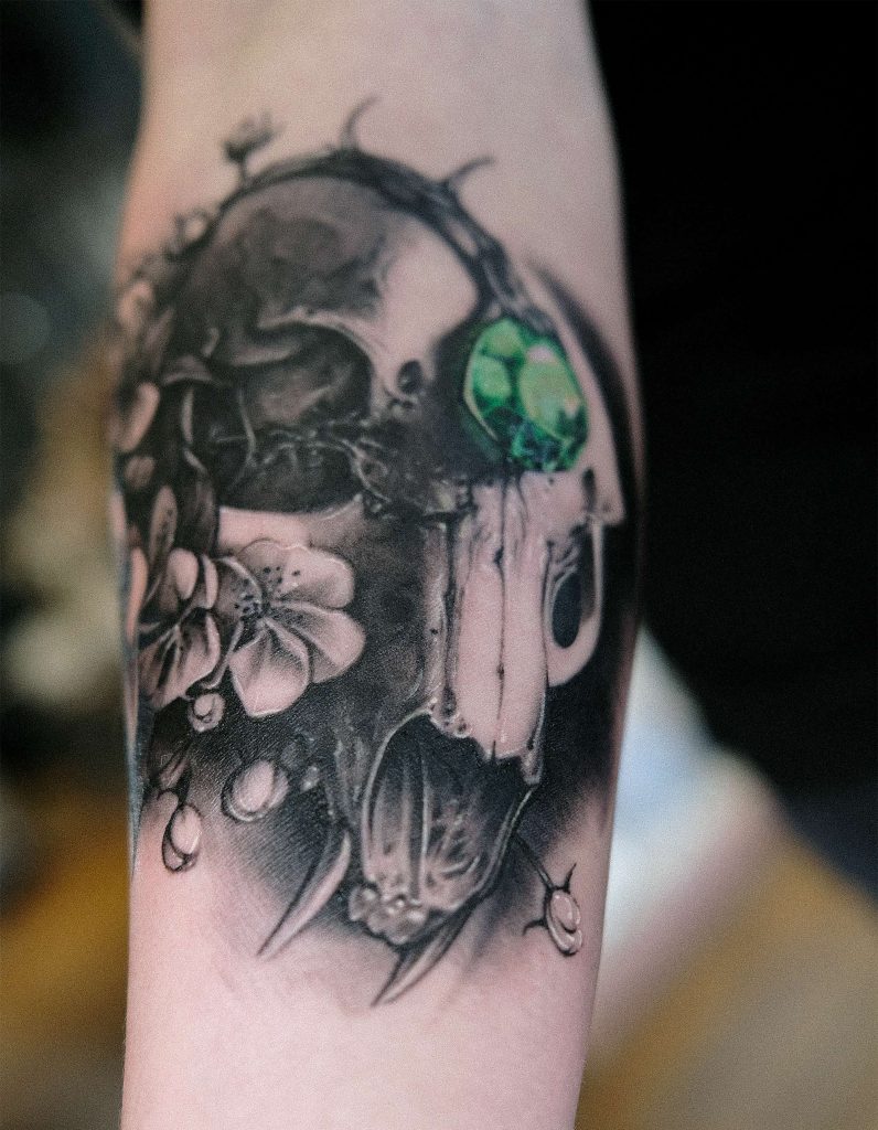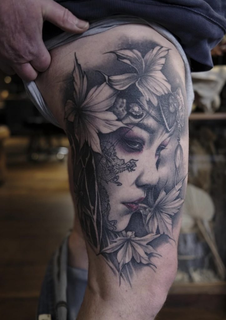 I naturally draw influence from anywhere not only art and tattooing; it could be brutalist architecture and ambient noises one minute, then wet plate photography or fashion designers the next. Anything with a genuine message, emotion, intent and depth speaks to me… or something with absolutely nothing to say, a black out sleeve or a tattoo of one well placed line if well executed with intention and thought, can have as much impact as a beautiful realistic portrait… I am intrigued by juxtaposition and contrast in classical, surrealism and also conceptual art, maybe someday I will find a way to amalgamate them in my own language.