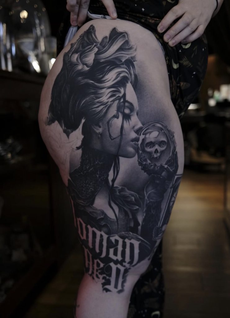 Specializing in black and grey realism, Gothic/Dark Surrealism, Blackwork, and portraits, Mark’s work is deeply influenced by his appreciation for the darker side of art and a passion for creating unique, collaborative pieces with his clients. He was taught and mentored by the renowned artist Tommy Lee Wendtner, and has spent years traveling and working in leading tattoo studios and conventions across Europe.